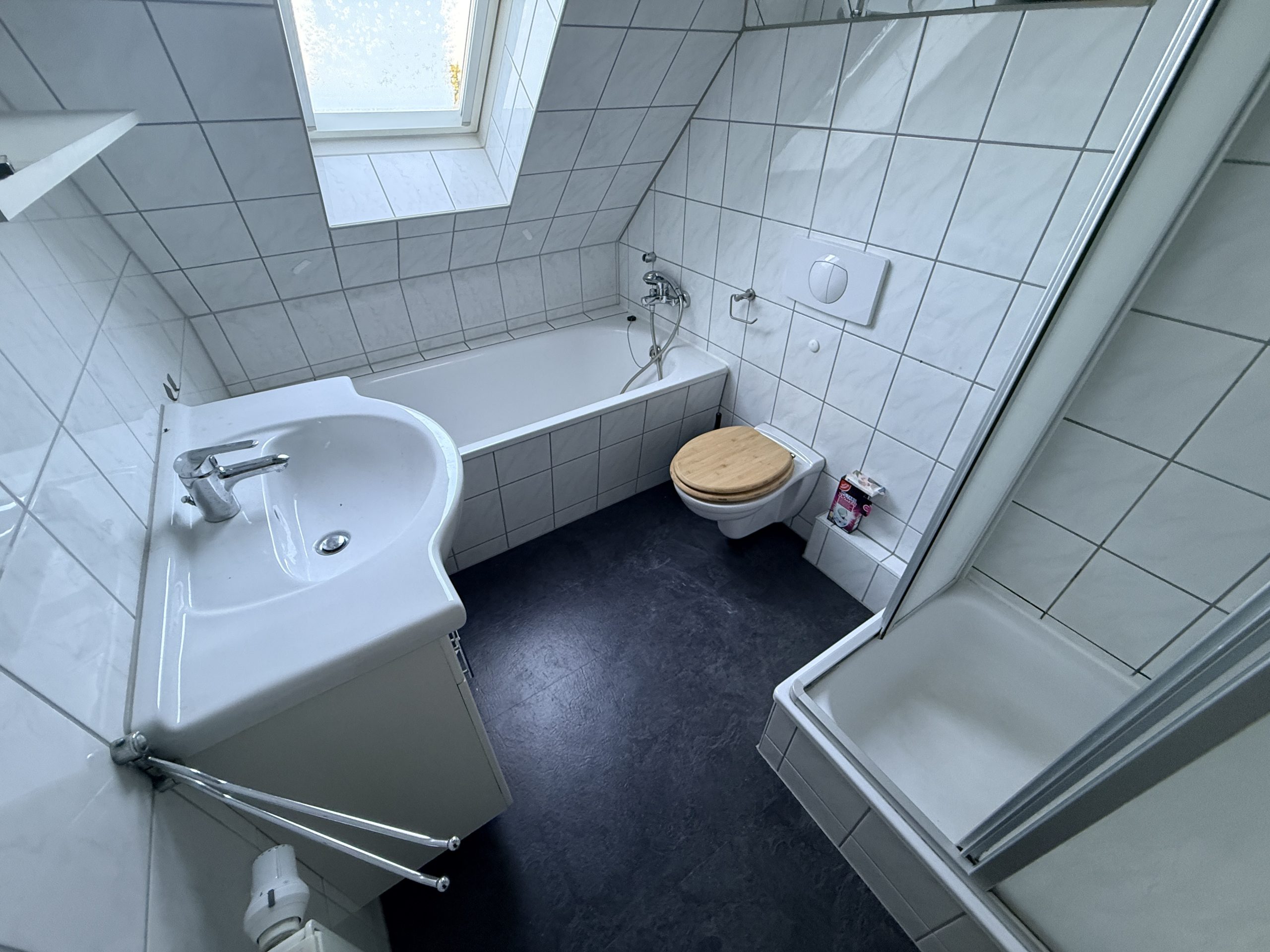 Die Wohnung präsentiert sich in einem guten Zustand und ist mit einer normalen Ausstattung versehen. Der Bodenbelag besteht aus einer Kombination von Laminat und Fliesen, die für eine warme und zugleich pflegeleichte Atmosphäre sorgen.
