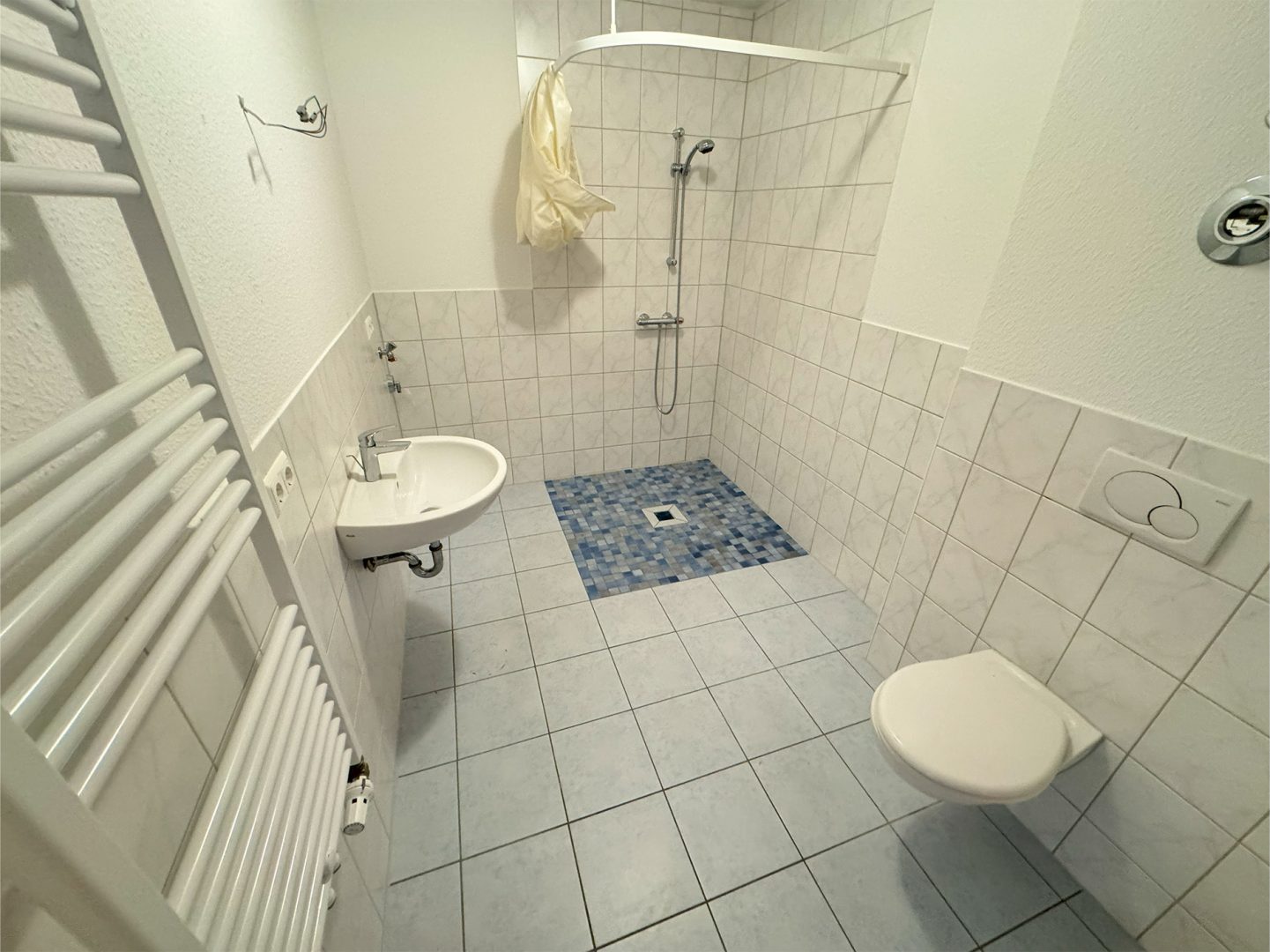 Die Wohnung überzeugt mit breiten Türrahmen für eine uneingeschränkte Bewegungsfreiheit sowie tief angebrachten Lichtschaltern, die den Alltag erleichtern. Das Bad ist mit einer ebenerdigen Dusche ausgestattet und ermöglicht so ein sicheres und komfortables Badezimmererlebnis. Der Bodenbelag aus hochwertigen Fliesen und Vinylboden sorgt für eine pflegeleichte und angenehme Wohnatmosphäre.